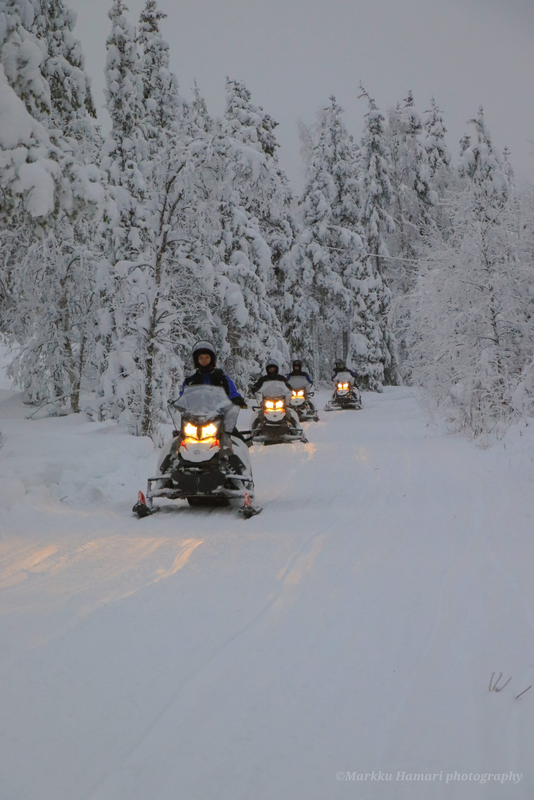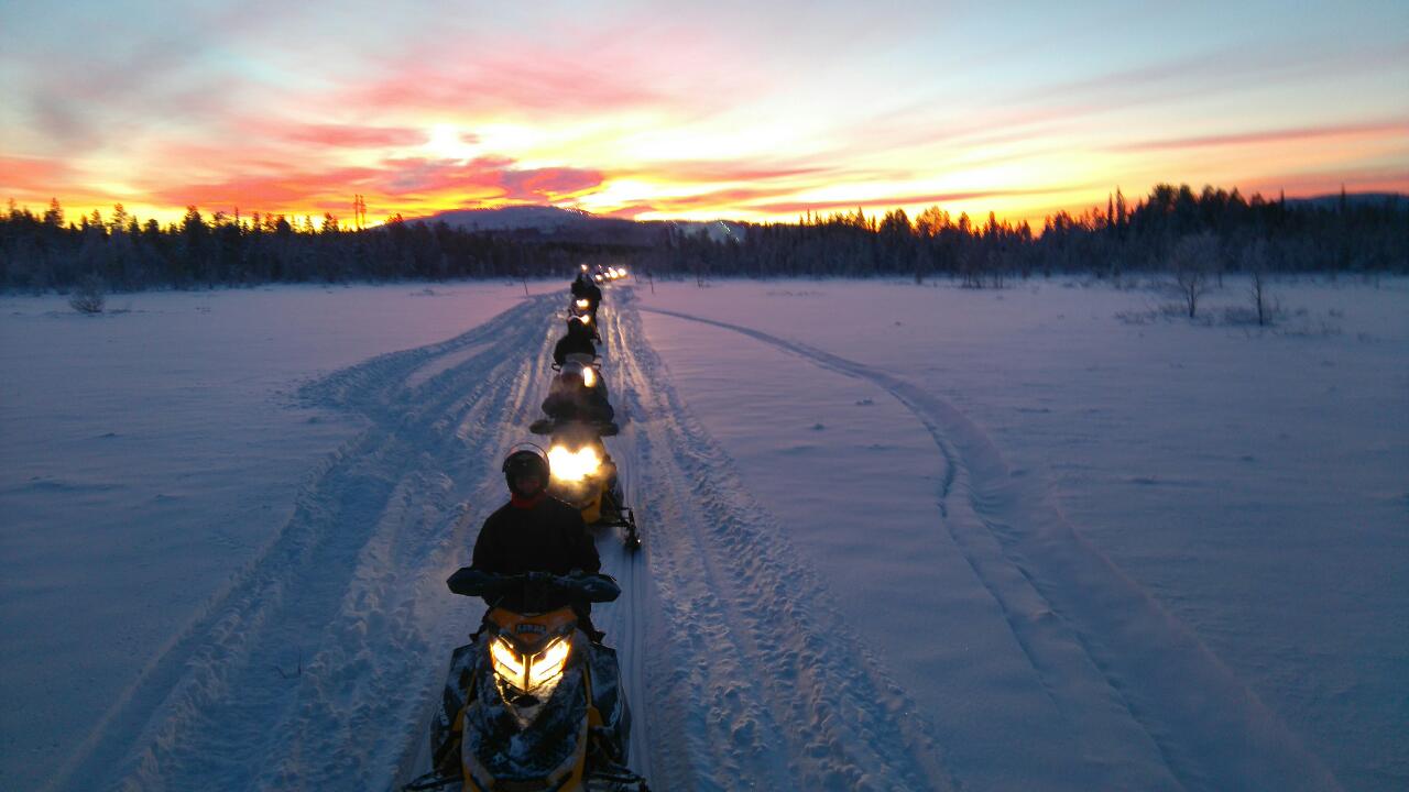 Don’t wait to get your holiday started. Start the fun right from Kittilä airport. Upon arrival to the airport, change into snowmobile driving gear and you are ready for a safari. The route takes us through snowy swamps and lakes and we will get to enjoy the beautiful scenery of snow covered Levi fell. When arriving in Levi the safari ends at Kinos Safaris office from where you will have car transportation to your place of accommodation. Your luggage will be transported to your place of accommodation.