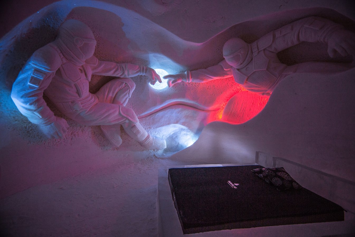 Embark on an exhilarating Snowmobile tour through the enchanting winter landscapes of Levi, making stops for photos and enjoying the magical scenery on our way to the Snow Village in Lainio. With a duration of approximately 5 hours, this tour allows you to discover the awesome Snow Village, where you'll encounter stunning ice and snow suites, sculptures, restaurants, and an ice bar. Enjoy a lunch break and marvel at the extraordinary craftsmanship that utilizes over 20 million kilos of snow and 300,000 kilos of crystal-clear natural ice each year.