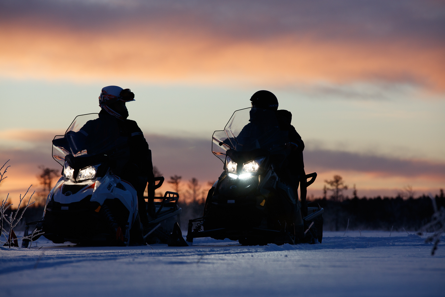 The total driving distance is around 90 kilometers, therefore this tour is recommended for adults and drivers with previous experience on snowmobiles.